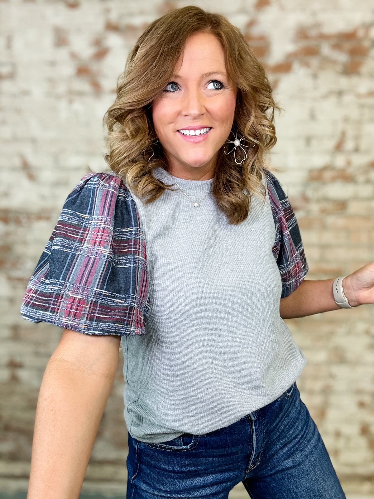 THML Sera Plaid Sleeve Top